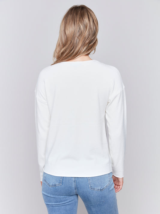 V-Neck Faux Knot Front Long Sleeve