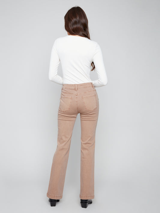 Flare Leg Stretch Twill Pants With Buttons