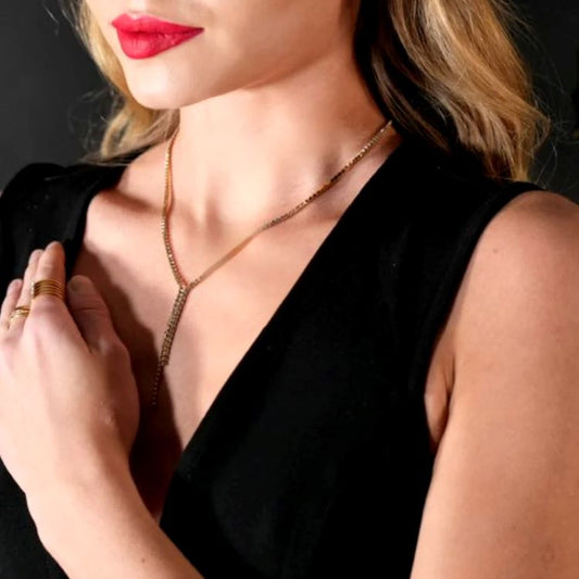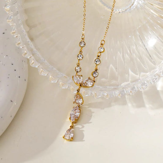 Diana Zirconia String Chain Necklace with a Lariat Detail