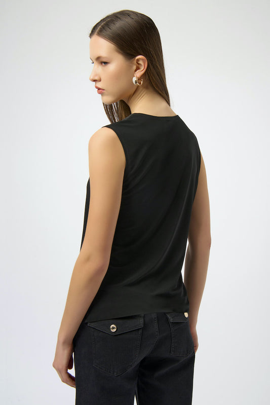 Sleeveless Hip Length Top With Ruching Detail