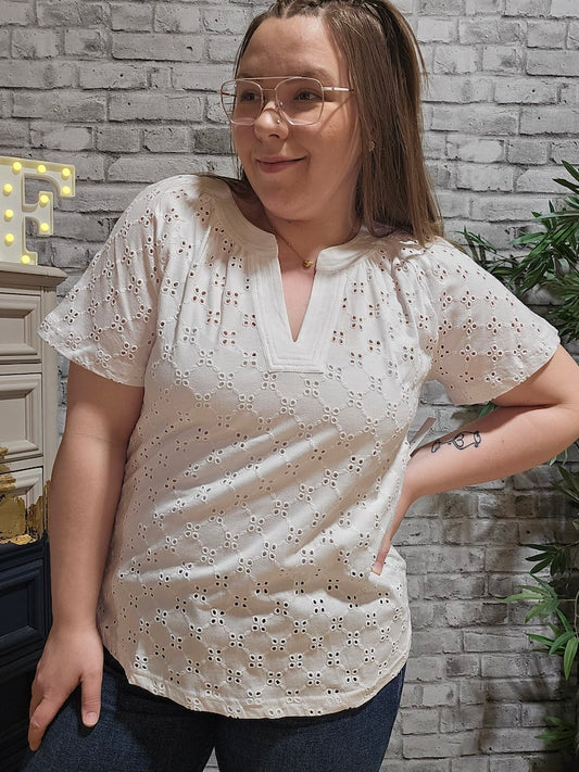 Combed Cotton U-Neck Waffle Sweater