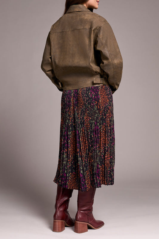 Print Pleat Skirt With Slit