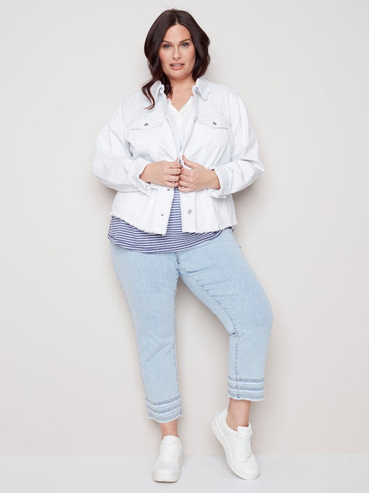Curvy Fringe Denim Jacket