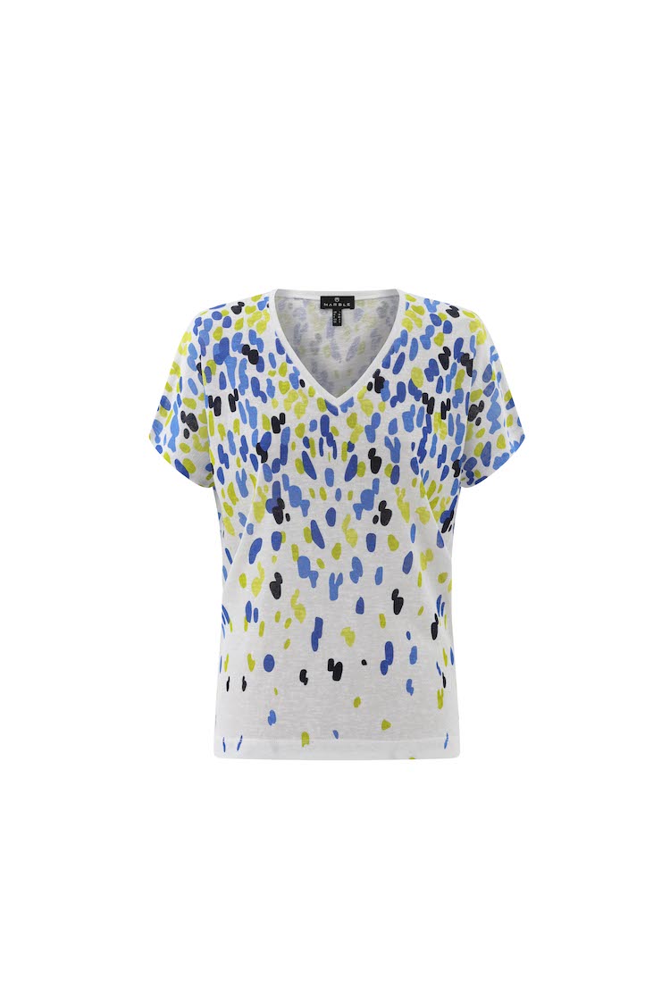 Introducing this new V-Neck Dot Print Short Sleeve, crafted from lightweight viscose slub for ultimate comfort and style. The relaxed fit and sleeveless design, paired with the stunning scatter print, make this top a must-have for any wardrobe. Elevate your look and feel confident all day long!