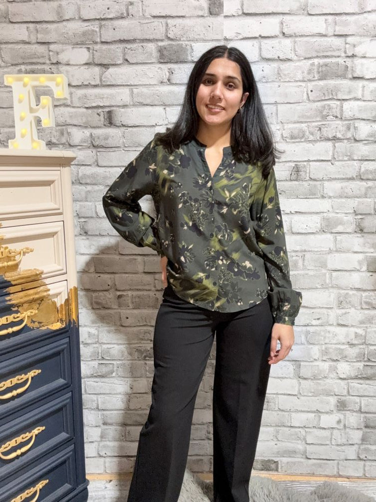 Step into playful sophistication with the CRTiah Shirt. Its long sleeves keep you cozy, while the button-front design adds a dash of classic charm. Perfect for layering or wearing solo, this blouse effortlessly balances comfort with style, making it your go-to for both workdays and weekend adventures.