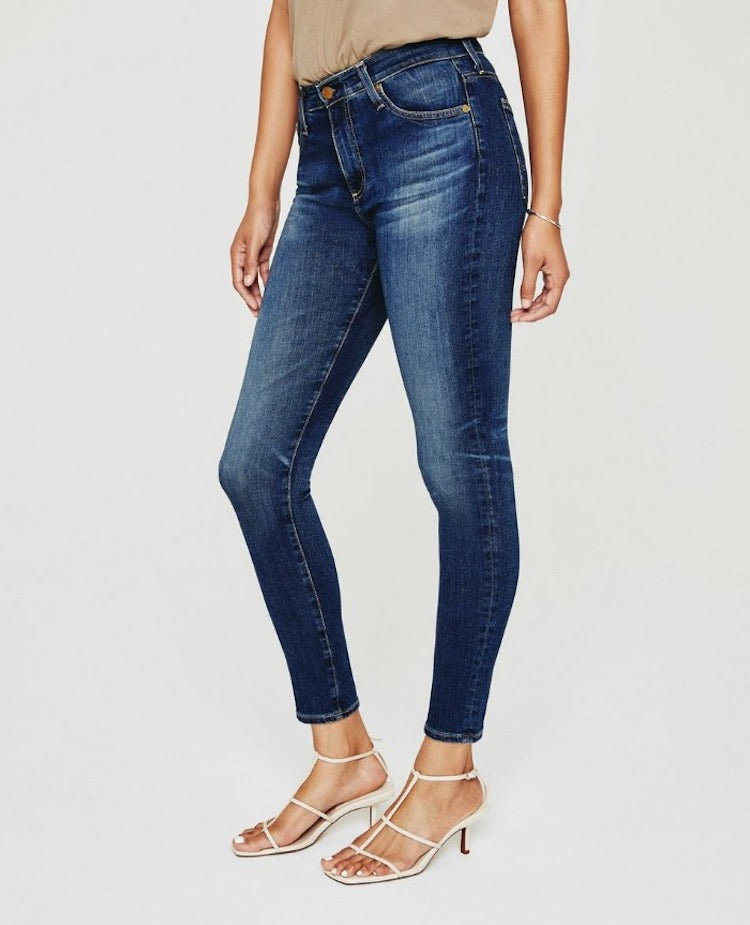 Los jeans Farrah High Rise Skinny Ankle de AG tienen un lavado oscuro de 7 años y tienen un corte favorecedor de cintura alta para una silueta elegante y un largo hasta el tobillo recortado. Estos jeans ajustados están diseñados en 10 oz. Denim elástico avanzado Rouge. Se ajusta a la talla real.
