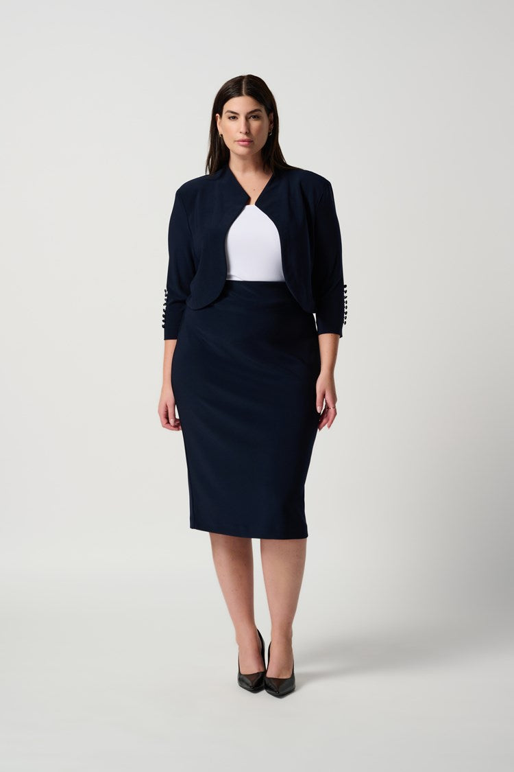 Una falda lápiz clásica es esencial para cualquier guardarropa. Esta falda de tubo larga clásica de Joseph Ribkoff tiene cintura alta y cuenta con una silueta estilizada y un dobladillo por debajo de la rodilla que se ajusta cómodamente a tu piel. Su sutil abertura en la espalda permite mayor transpirabilidad y movilidad. Una pieza ideal tanto para el trabajo como para eventos, completa tu look con un blazer a juego para llevar tu estilo al siguiente nivel.