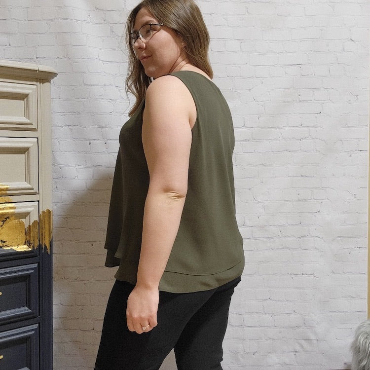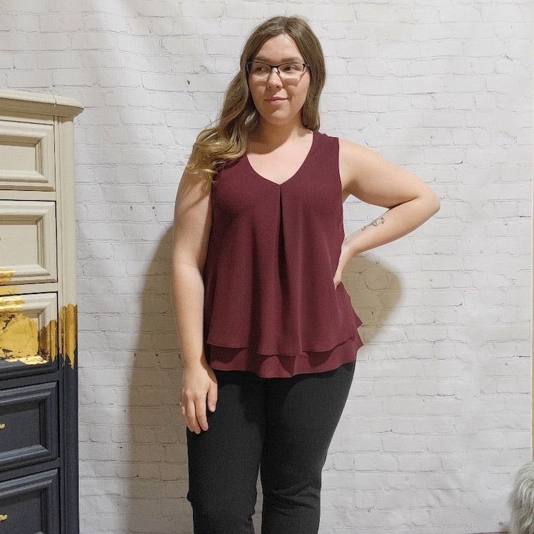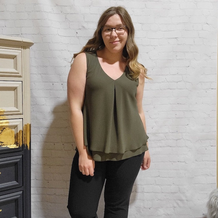 Ofreciéndote conceptos básicos que son todo lo contrario. Esta preciosa camiseta sin mangas con cuello en V es prueba de ello. Este top en capas te brinda un look favorecedor que es tan versátil como bonito. Es ideal para la oficina con faldas o pantalones de vestir y también queda perfecto con unos cómodos jeans.