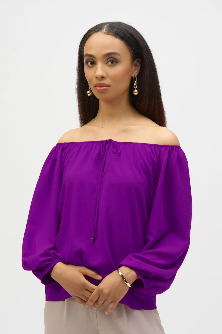 Elevate your style with this Off-shoulder Puff-sleeve Pullover! Crafted from a luxurious woven eggshell fabric, this top features a keyhole neckline with drawstring for a customizable fit and three-quarter puff sleeves for a feminine touch. Unlined for a lightweight and comfortable feel. You'll love the unique and chic look of this pullover!