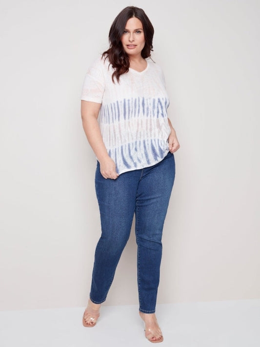 Curvy Tie Dye T-shirt col en V