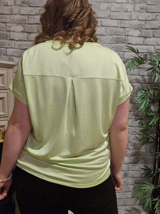 V-Neck Button Detail Short Sleeve