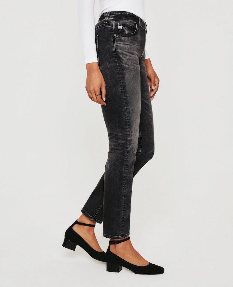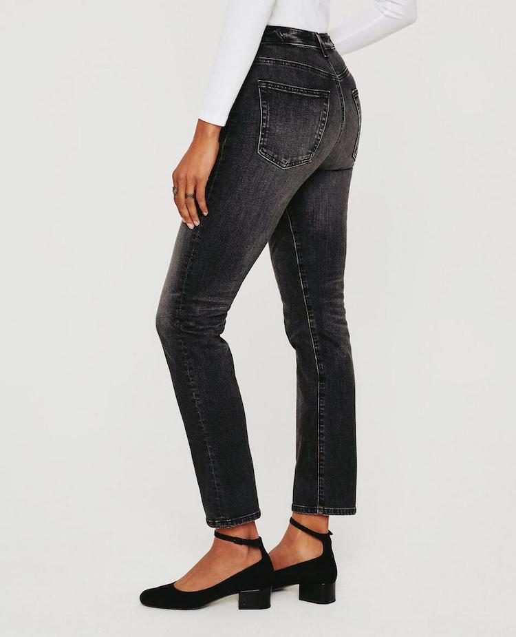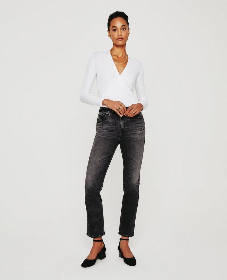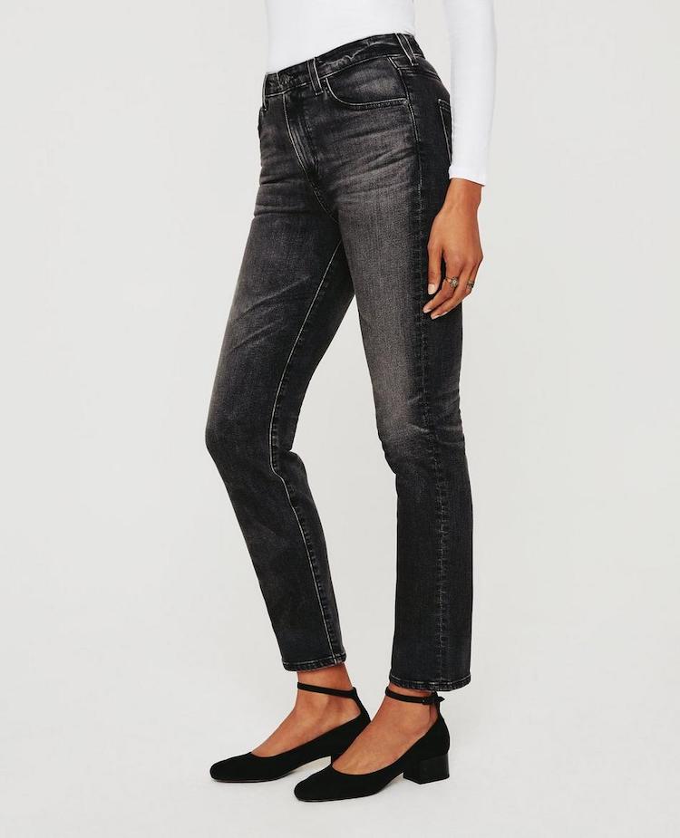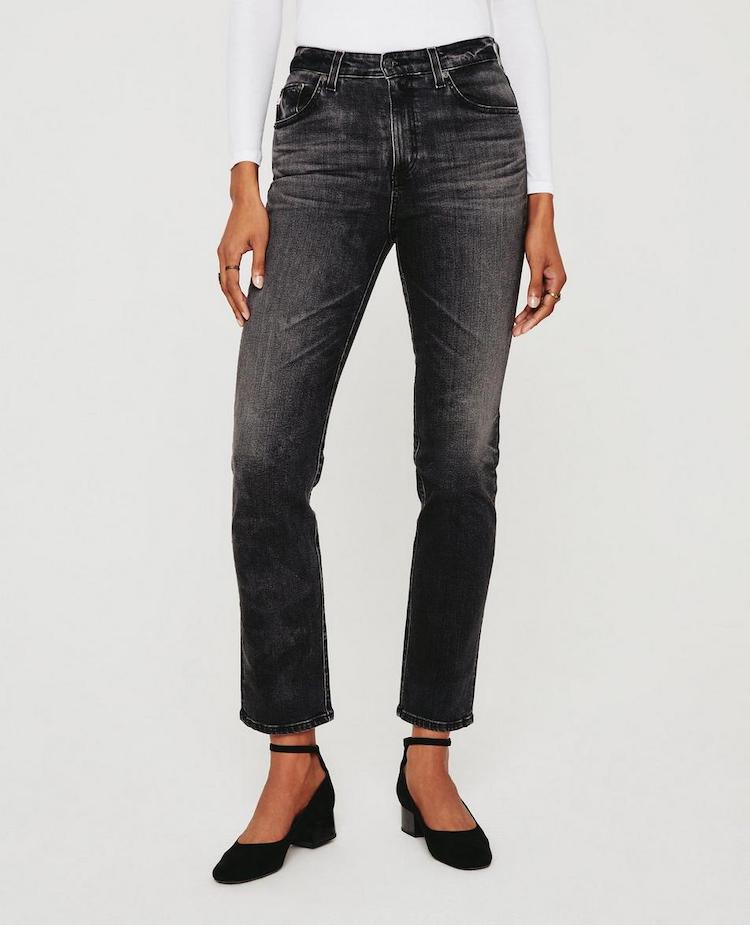 L'AG Saige est un jean droit taille haute, avec un délavage noir lui donnant un fondu vintage de 10 ans avec des marques de moustaches et de plis aux points de friction naturels. Vous allez adorer qu'il s'agisse d'un tissu extensible confortable à porter au quotidien, doté d'une braguette zippée, d'un empiècement incliné et de coutures latérales légèrement vers l'avant. Parfait à porter avec vos hauts préférés.