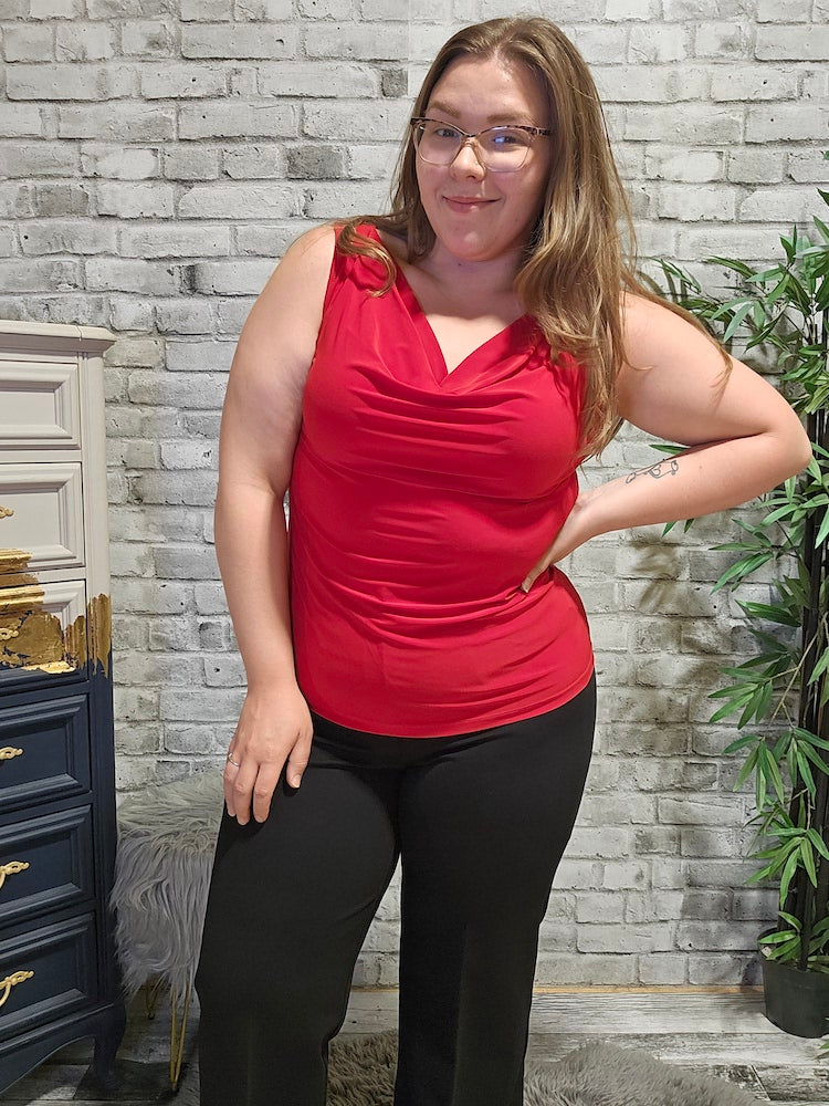 Elevate your wardrobe with this Cowl Neck Sleeveless Pullover. Versatile and stylish, wear it alone or as a layering piece. The scooped cowl neckline adds a touch of sophistication to this essential camisole. Perfect for any occasion.