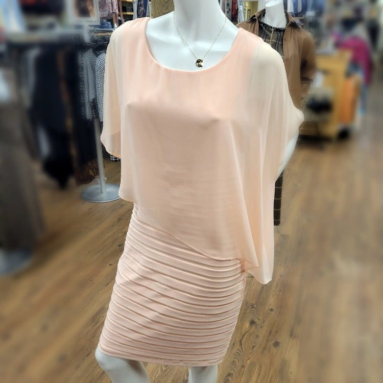 Robe en tricot élégante et toujours flatteuse avec superposition transparente et bas bandage amincissant. À porter toute la saison. Environ. 39 pouces de long avec des manches aux coudes de 10 pouces. C'est un style classique et facile pour toutes les occasions,