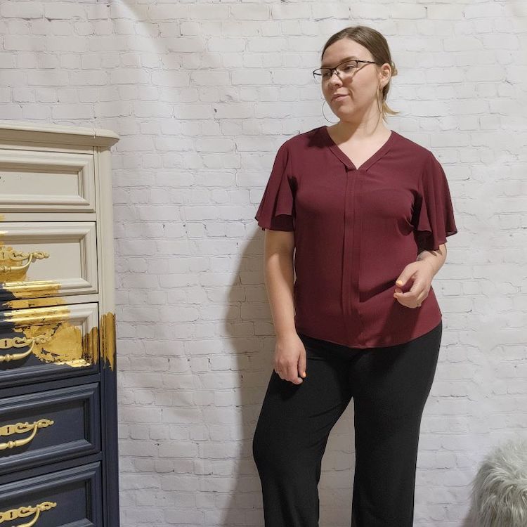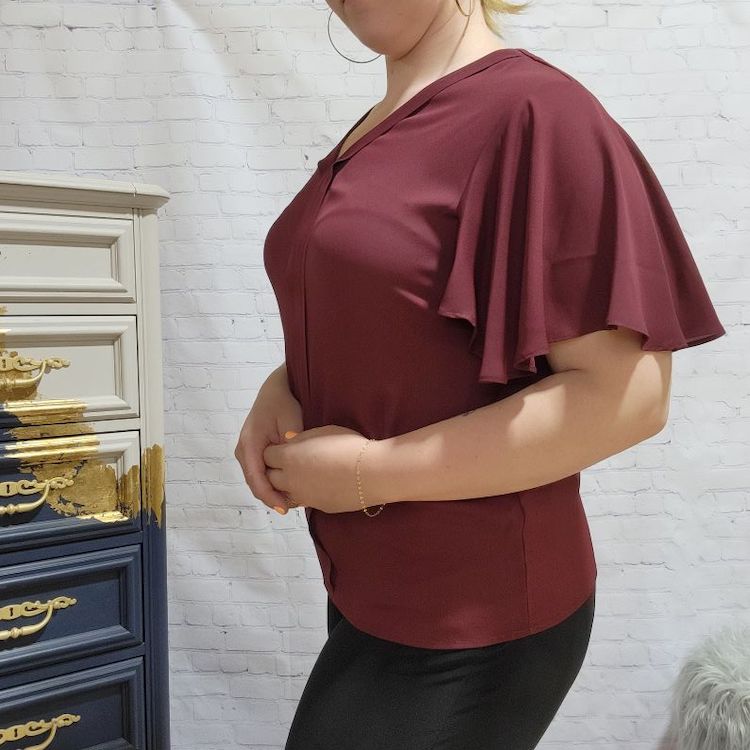 Certains jours, un simple look peut suffire. Ce haut à manches volantées de Frank Lyman vous offre un haut parfait à ajouter à votre jupe ou pantalon préféré. La couture du col en V descend sur le devant pour un détail visuel et les manches à volants ajoutent un peu de fantaisie à votre style quotidien.