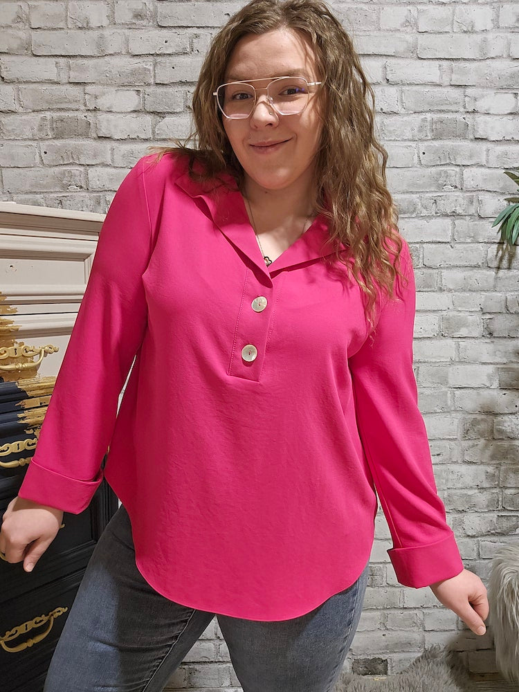 The Classic Long-sleeve Shirt boasts a timeless shirt collar, along with versatile three-quarter sleeves and a chic button front. Made without lining for a lightweight and comfortable fit, it's the perfect addition to any wardrobe. Look effortlessly stylish and feel confident in this must-have shirt.