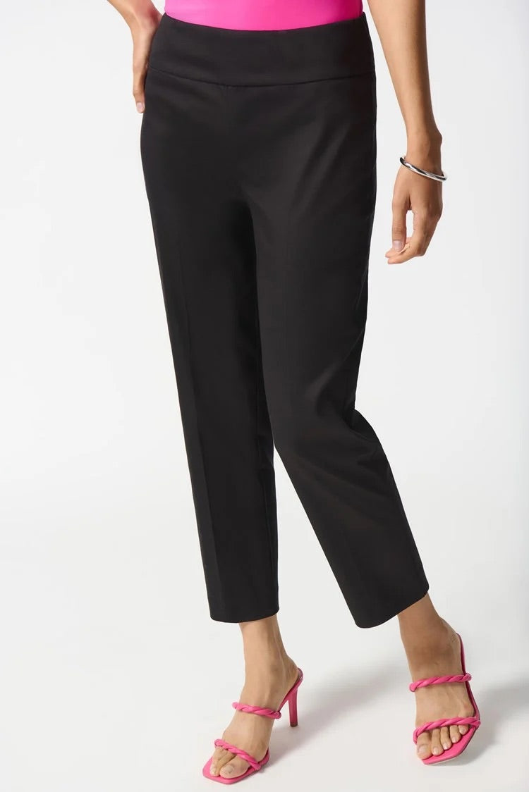 These cropped pull-on pants are essential for any fashion-forward wardrobe. With a sleek silhouette that accentuates your curves and a structured contour waistband for all-day comfort, these pants are perfect for any occasion. The delicate JR tab ornament adds an extra touch of charm to this modern and versatile piece.