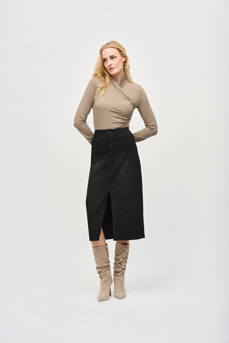 Elevate your style with the Joseph Ribkoff High-rise Midi Pencil Skirt. With a high-rise waist and comfortable midi length, this modest and chic skirt is perfect for everyday wear. The classic plain pattern exudes understated elegance, while the strategically placed slit adds sophistication. A must-have for any wardrobe!