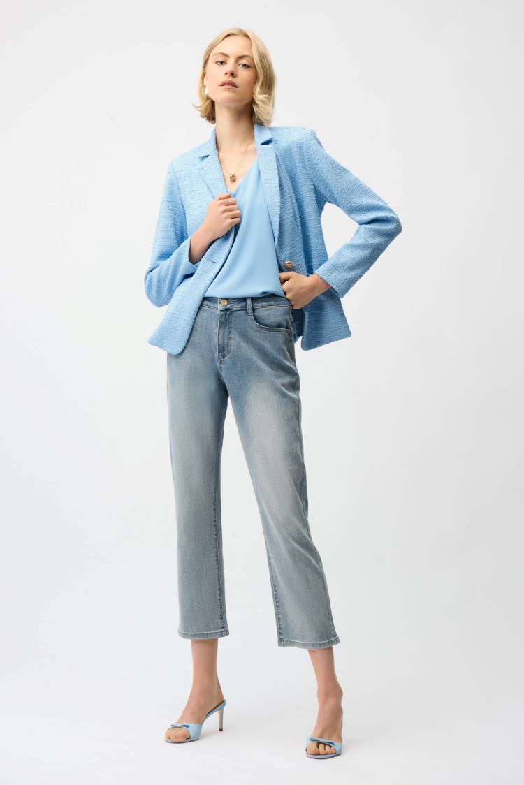 Elevate your everyday style with the Joseph Ribkoff Blazer—the ultimate wardrobe MVP that works as hard as you do. This hip-length beauty features a crisp collared neckline, straight sleeves, and a regular fit that flatters without fussing. Button closure and functional pockets mean you're ready for anything, whether you're conquering the office, attending a formal event, or keeping it casually chic. The timeless plain pattern and business-feminine silhouette make it the go-to layer that transforms any outfit from basic to brilliant.