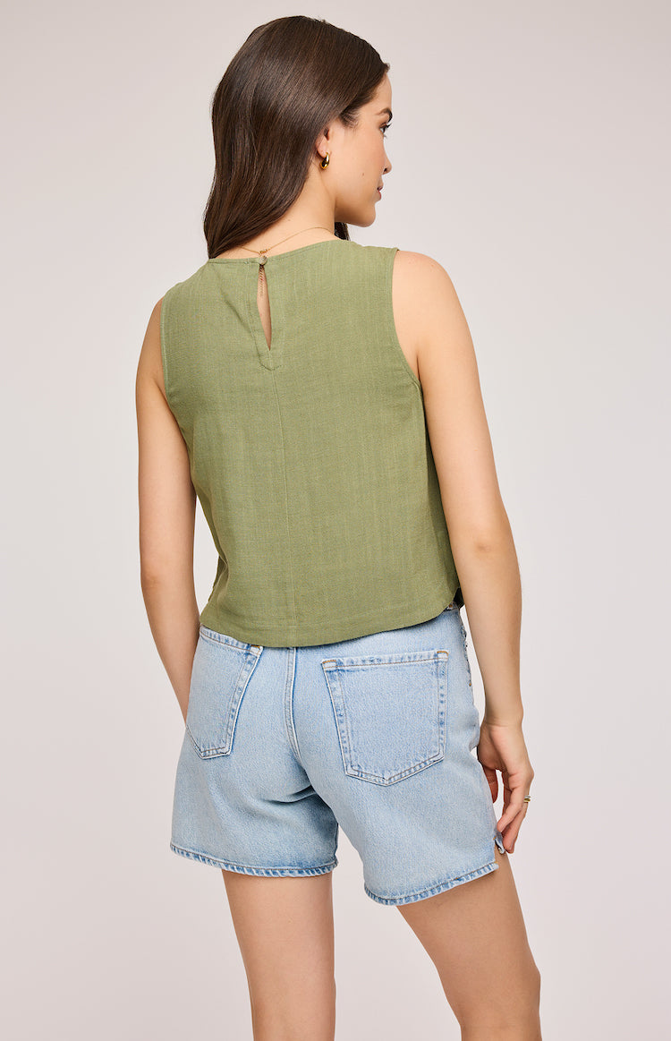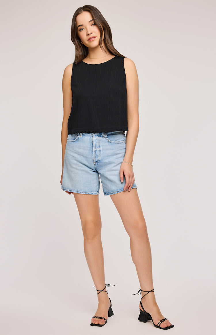 Elevate your wardrobe with the River Tank. The linen blend fabric offers a comfortable and effortless feel, while the curved hem detail and back button closure add a touch of style. Pair it with the Amalfi short or Finley pant for a complete look.