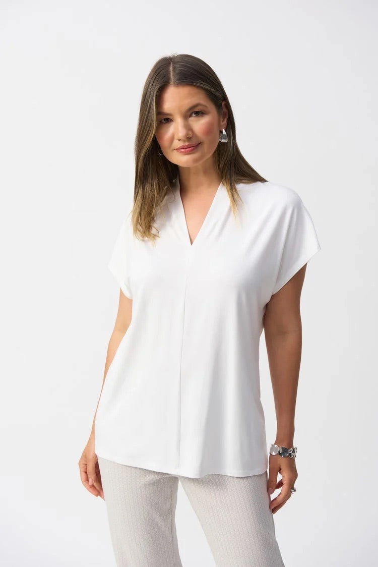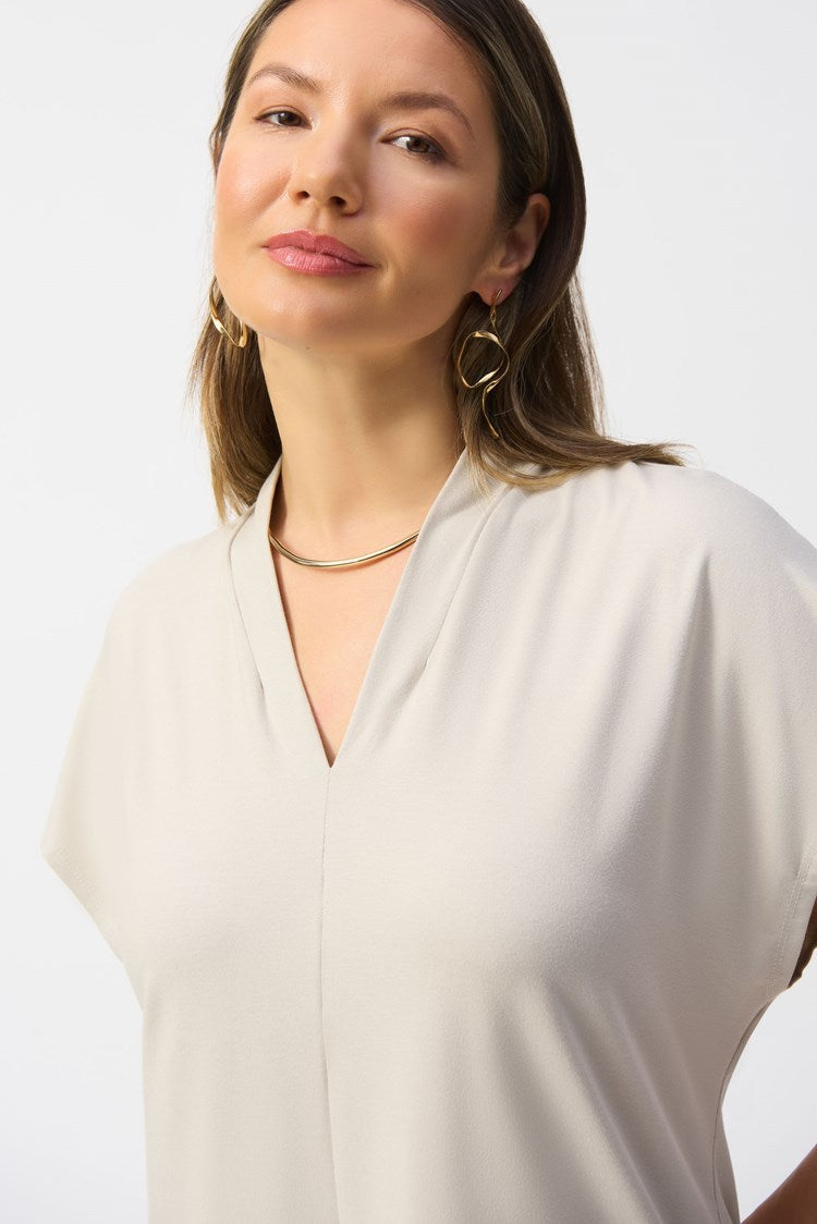 Elevate your everyday wardrobe with this V-neck Casual Pullover. Made from soft jersey knit, its pleated V-neckline and short dolman sleeves add a touch of sophistication. The high low hem provides a flattering silhouette while remaining unlined for a lightweight feel. Upgrade your style with this must-have piece!